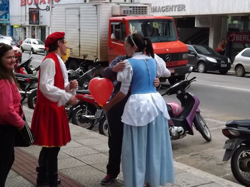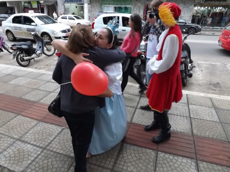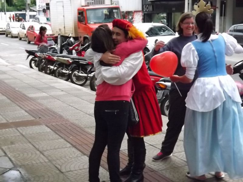 22/05/2014 Foi realizado nesta quinta-feira (22) o Dia do Abraço. A Unoesc repetiu a ação que realizou em 2013. Durante a tarde funcionários da universidade e atores estiveram no Centro de Joaçaba distribuindo abraços para as pessoas. A concentração ocorreu na avenida XV de Novembro e na praça Adolfo Konder. A ação aconteceu também durante a manhã e se estendeu à noite dentro da universidade, voltada a alunos, professores e funcionários.