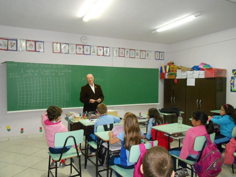 23/05/2014 Alunos da escola Pequeno Príncipe de Herval d’ Oeste tiveram nesta sexta-feira (23) uma palestra com uma das lideranças mais respeitadas da região, o ex-prefeito Rudy José Nodari. A experiência adquirida ao longo dos seus 84 anos de idade na vida pessoal e política foram repassadas aos estudantes. A escola Pequeno Príncipe foi construída durante a administração de Nodari, entre 1977 e 1983, que começou com Centro Comunitário – FUCABEM - com o Projeto "Educar" que atendia crianças de2 a6 anos mantidas pelo convênio LBA. Os segundos anos das professoras Silvana e Lariane estão trabalhando o Projeto História da Escola. Nodari contou para as crianças toda a história da construção da escola e da preocupação que tinha com a Educação das crianças, onde considerava que todas tivessem escola para frequentar para terem um futuro melhor. “Parabéns. Muito Obrigado pela sua presença ilustre ex-prefeito Rudi José Nodari, que sempre se preocupou com o bem-estar das crianças e continua trabalhando em prol da nossa Educação”, agradeceu a direção.