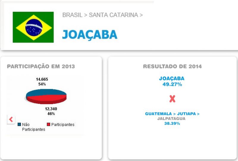 Em 2013 Joaçaba mobilizou 45,70% da população (12.340 pessoas) e venceu a cidade colombiana de Villagarzon. O adversário somou apenas 1,10%. Pelo quinto ano consecutivo Joaçaba vence o Dia do Desafio. Já Luzerna no ano passado superou o município de Vila Maria (RS) com uma margem pequena mobilizando nesta edição 50,71% da população contra 49,44% da cidade gaúcha. Herval d’Oeste que em 2013 venceu Cundinamarca (Colômbia) com percentual de 32%, este ano venceu a Costa Rica conseguindo mobilizar 23,74% da população. Costa Rica fez 12,24%