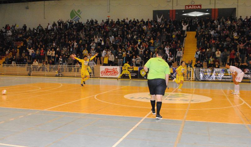 01/06/2014 O Joaçaba Futsal mais uma vez fez bonito diante da sua torcida. Neste domingo (1º), aproximadamente 1,5 mil pessoas foram ao Centro de Eventos da Unoesc apoiar o time da casa contra o Concórdia, vice-campeão da Liga Futsal 2013. Em partida válida pela quinta rodada do returno da Divisão Especial, o Joaçaba venceu por5 a3, com gols de Turmena (2), Geovani Fuska (2) e Winícius. Uma disputa emocionante, marcada pela garra e determinação do grupo joaçabense, que chega aos 21 pontos na tabela e está perto da classificação aos play-offs. O próximo confronto da equipe, que está invicta há oito partidas, é nesta quarta-feira (4), às 20h15 no Centro de Eventos da Unoesc contra o Caça e Tiro de Lages.