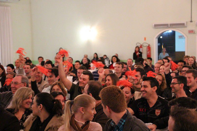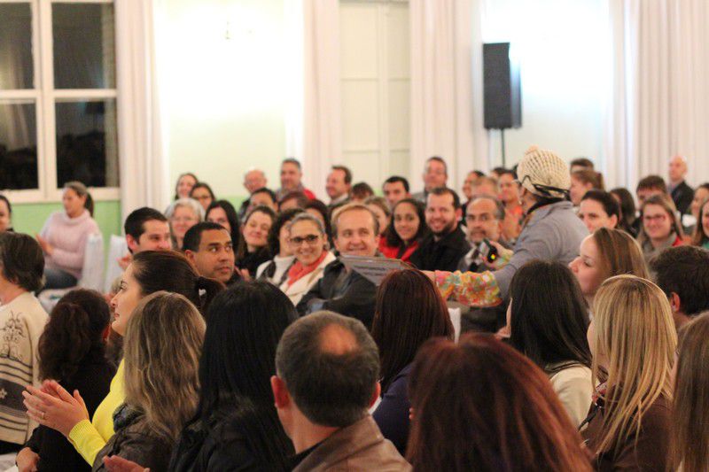 04/06/2014 De forma descontraída e ao mesmo tempo lúdica, o grupo teatral Carretel de Concórdia encerrou na noite desta quarta-feira (04) em Joaçaba o 1º Seminário “O Desafio da Liderança no Século XXI. O evento, que lotou o Clube Cruzeiro durante os dois dias, foi promovido pelo Sebrae em parceria com a Câmara de Dirigentes Lojistas (CDL).