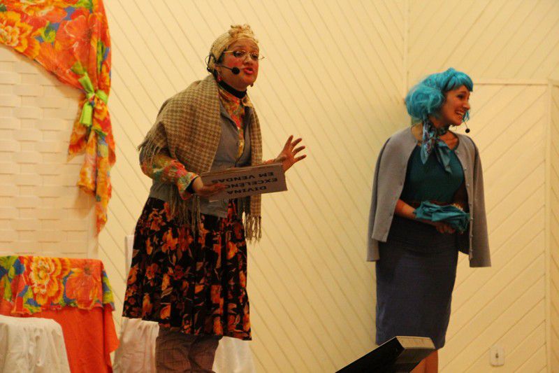 As lições foram muitas durante a peça onde as integrantes do grupo procuraram interagir o tempo todo com a plateia, inclusive convidando pessoas que estavam assistindo a peça, e que atuam na área de vendas, a subir ao palco e tentar vender dois produtos inusitados para a ocasião: um pinico e uma cueca.