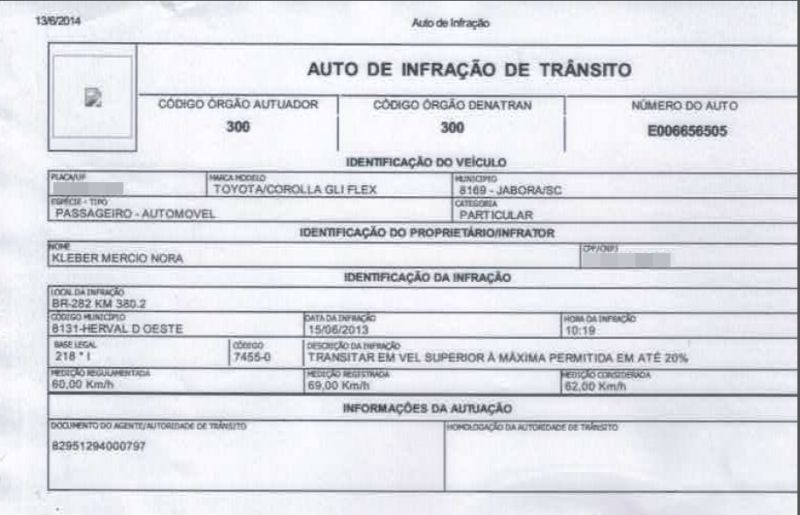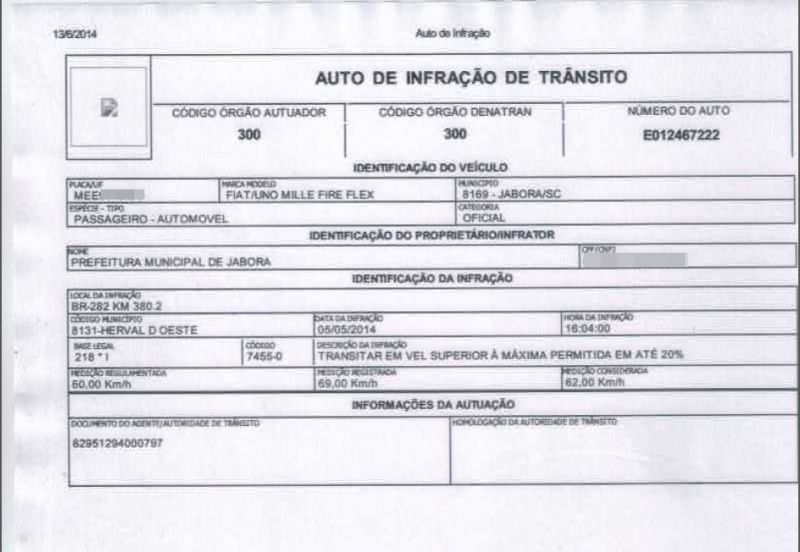 13/06/2014 O prefeito de Jaborá, Kléber Mércio Nora (PMDB), estranhou o número de multas de trânsito recebidas por veículos oficiais do município e até dele próprio na BR-282 em Herval d' Oeste. De acordo com ele as multas foram aplicadas no radar instalado próximo à cabeceira da ponte Alfredo Ítalo Remor. Três veículos oficiais do município foram notificados e ainda o particular dele. Nora explica que moradores do município também reclamaram a ele da situação. Os veículos da prefeitura foram notificados com velocidade superior à permitida que no local é 60 km/h. A velocidade registrada foi de 69 km/h e a medição considerada de 62 km/h, acima do permitido. Mas o que chama a atenção do prefeito é que todos foram na mesma faixa, ou seja, no mesmo ponto. Nora ressalta que a preocupação é porque o município não pode pagar multas com dinheiro público, mas os condutores. “Eu acho que pelo valor, para não se incomodar a pessoa acaba pagando para se livrar dessa pendência”, analisa. Ele completa que um amigo dele, morador de Jaborá, também teria enfrentado a mesma situação.
