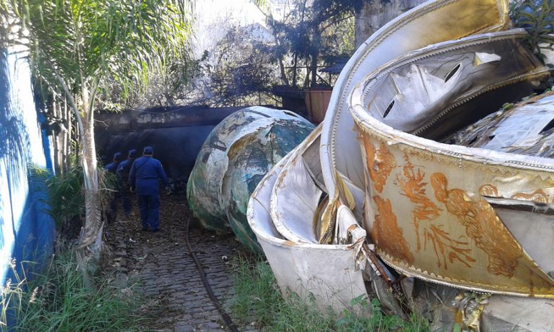 22/06/2014 Uma ocorrência de incêndio na área central de Joaçaba mobilizou as equipes do Corpo de Bombeiros na tarde deste domingo (22). Por volta do meio dia as equipes foram acionadas e se deslocaram até o Espaço Vale Samba na antiga JOAUTO, ao lado do Clube Cruzeiro. O fogo começou no porão do prédio onde ficam as fantasias e carros alegóricos da escola. Várias peças foram queimadas pelas chamas bem como uma caixa onde ficam os disjuntores da rede elétrica. O que chamou a atenção, é que tinha uma churrasqueira próxima ao local que continha brasas quentes como se um churrasco estivesse sendo feito. Suspeita-se que o local estava sendo usado por pessoas ainda não identificadas. Não se descarta também a possibilidade do incêndio ter sido criminoso. O Corpo de Bombeiros realizará um levantamento técnico para apurar as causas do incêndio.