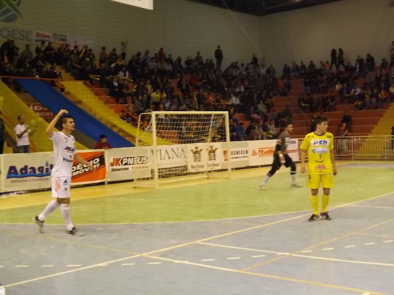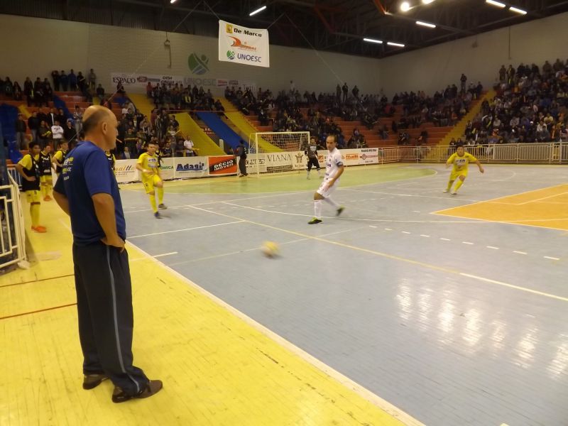 25/06/2014 Num jogo bem disputado e de dois tempos diferentes, a equipe do Joaçaba Futsal manteve a invencibilidade dentro de casa, mas desta vez o resultado não foi o esperado diante da forte equipe de Concórdia, atual vice-campeã da Liga Nacional. O bom público que se fez presente nas dependências do Complexo da Unoesc na noite desta quarta-feira, 25, pode acompanhar um primeiro tempo de muita marcação por parte das duas equipes. Numa bola roubada em contra-ataque, Topeira fez uma triangulação com Turmena e na saída do goleiro Cidão, Topeira bateu forte, rasteiro no canto esquerdo fazendo Joaçaba 1 a 0. Esse foi o placar do primeiro tempo.