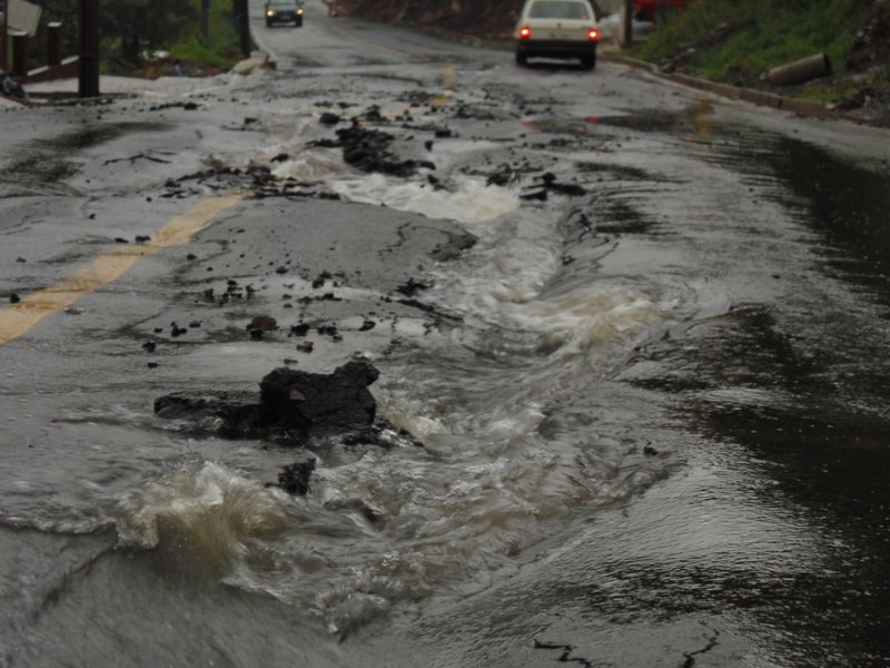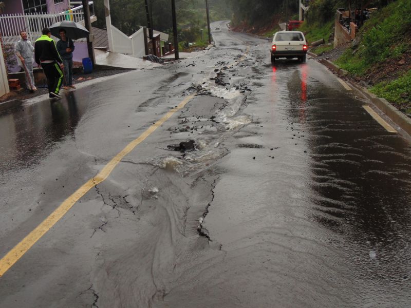 26/06/2014 Uma verdadeira cratera se abriu no início da manhã desta quinta-feira (26) na rua Amábile Falavinha na Vila Pedrini em Joaçaba. A rua é o principal acesso de desvio de trânsito em razão das obras de duplicação no acesso Adolfo Ziguélli. O asfalto novo cedeu logo no início da rua e o trânsito no local está fluindo de forma precária com risco para os usuários. No local tem muita água na pista o que deve agravar ainda mais a situação. A Secretaria de Infrastrutura da prefeitura está avaliando a situação.