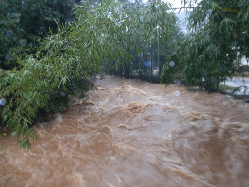 26/06/2014 A equipe de reportagem da Rádio Catarinense gravou na manhã desta quinta-feira, por volta das 10h30, um vídeo que mostra as forças das águas do Rio do Tigre, próximo do Estádio Oscar Rodrigues Danova. O rio saiu da caixa na rua que passa nos fundos do estádio e está praticamente no nível do estádio.