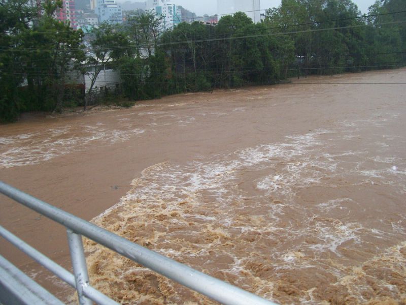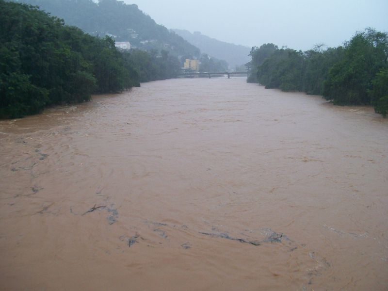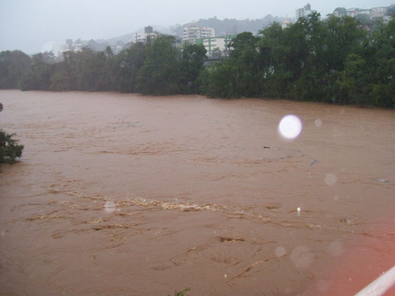 26/06/2014 O Rio do Peixe continua subindo. A última medição do SIMAE, realizada às 14h30, mostrava que o Rio estava com 9 metros e 12 centímetros, uma elevação média de 12 centímetros por hora. Agora pouco a reportagem da Rádio Catarinense fez algumas fotos da passarela que liga os municípios de Joaçaba e Herval d’Oeste. As fotos mostram o grande volume de água do rio que já está chegando em prédios ribeirinhos.