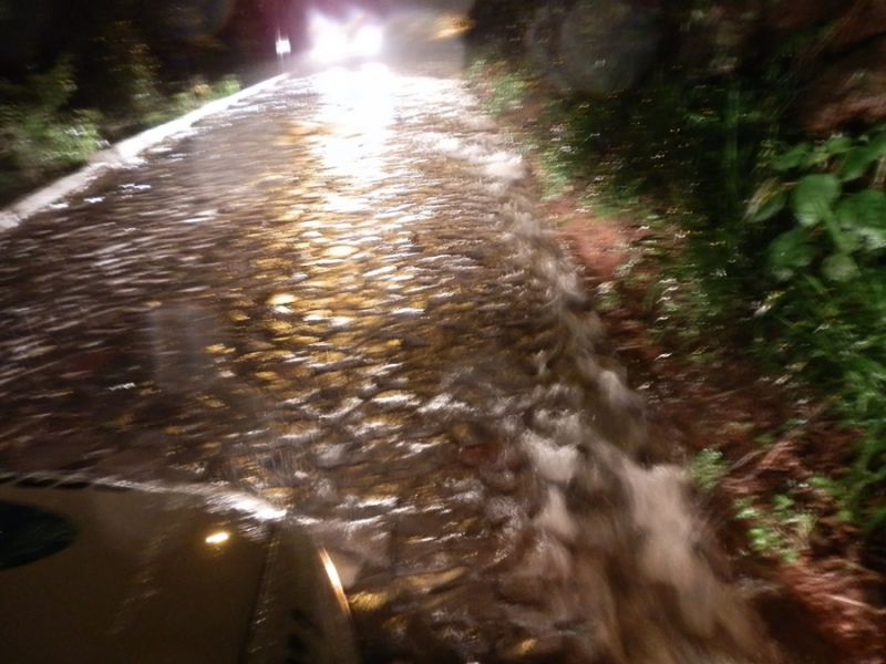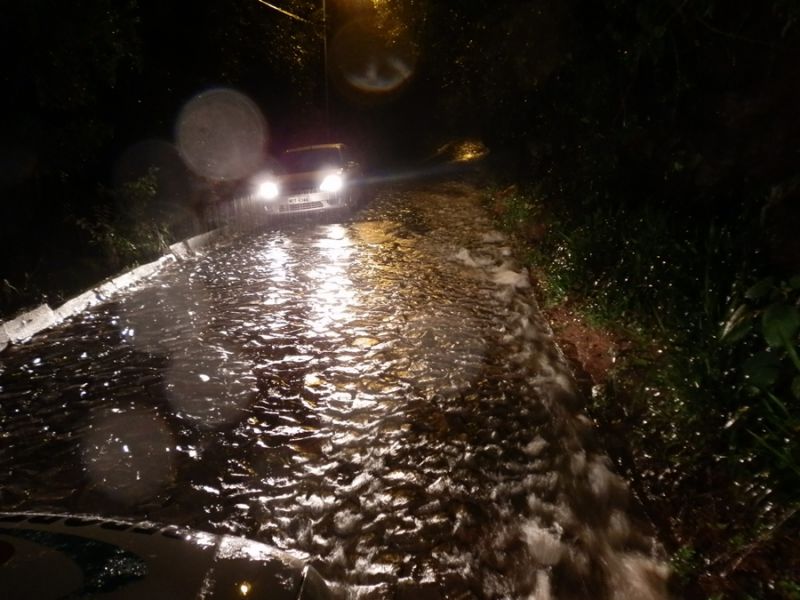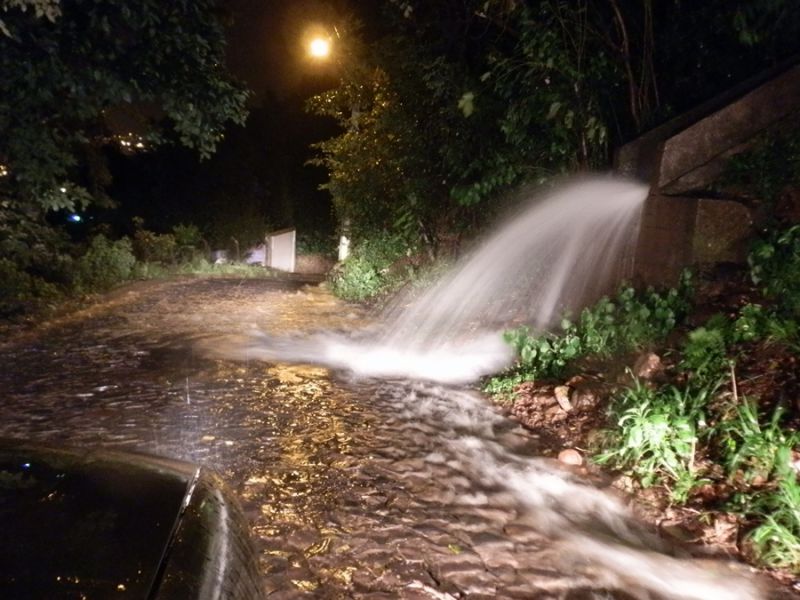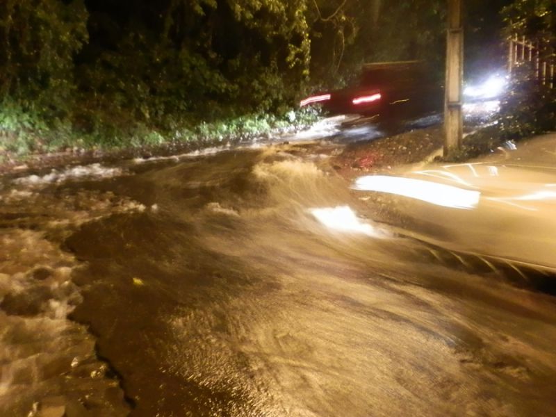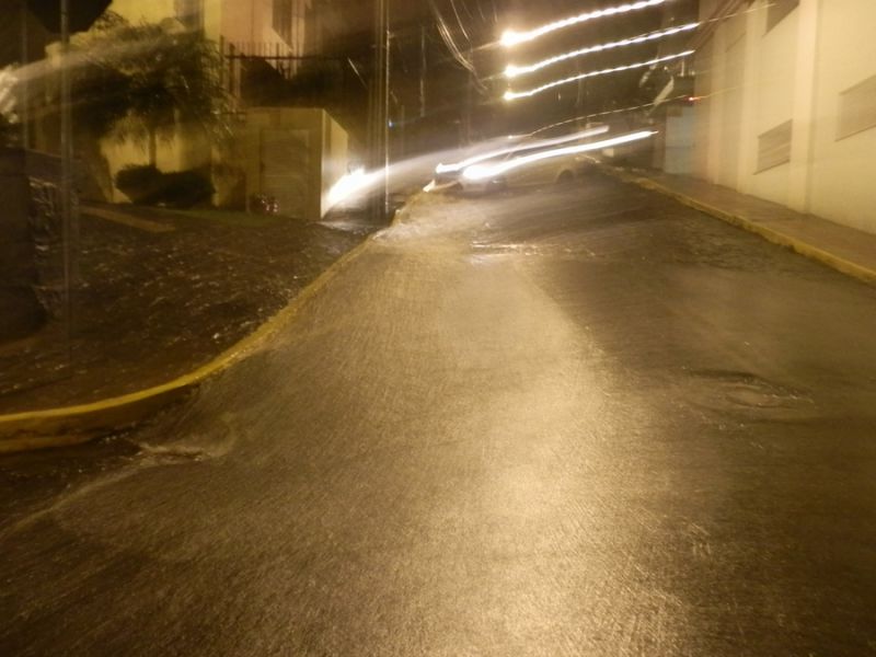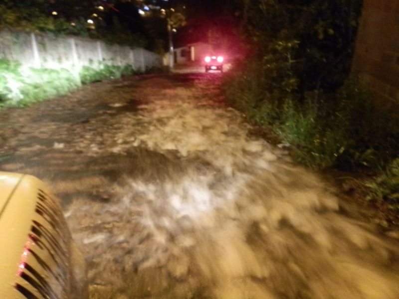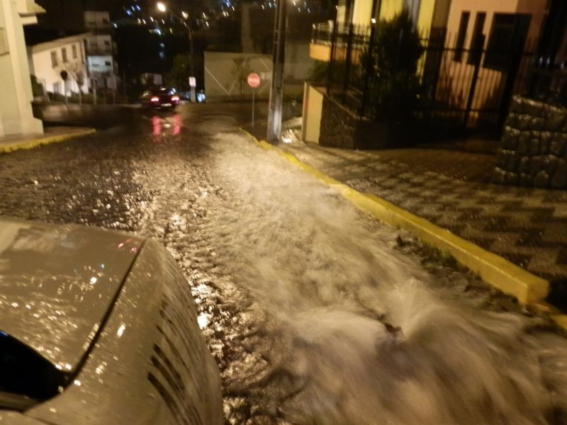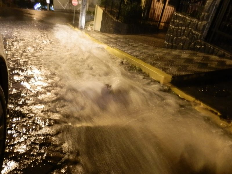 26/06/2014 O volume de água que desce dos morros em Joaçaba é algo que impressiona. No início da noite desta quinta-feira (26), por volta das 20h, a equipe de reportagem da Rádio Catarinense percorreu alguns locais afetados pela enxurrada que assola todo Meio-Oeste Catarinense. O local que mais impressiona é a rua Augusto Albugéri, ligação usada para acesso a cidade alta como desvio em razão das obras do Adolfo Zigélli. A pista está tomada por muita água e uma verdadeira cascata se forma num determinado trecho. Mesmo com a recomendação para não se usar a via, flagramos muitos motoristas abusando da sorte. Os riscos de deslizamento em razão do fluxo de água são iminentes. As bocas de lobo estão entupidas e a água corre pela pista no sentido as partes mais baixas. A Defesa Civil pede para que os motoristas utilizem o acesso sul e não usem a referida rua.