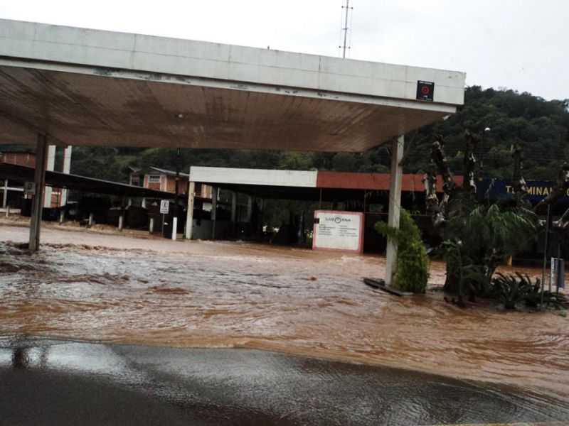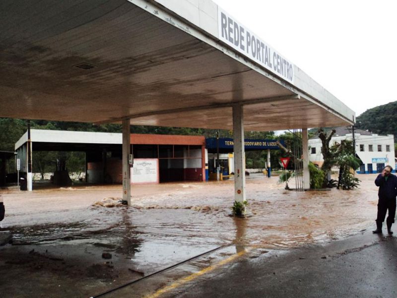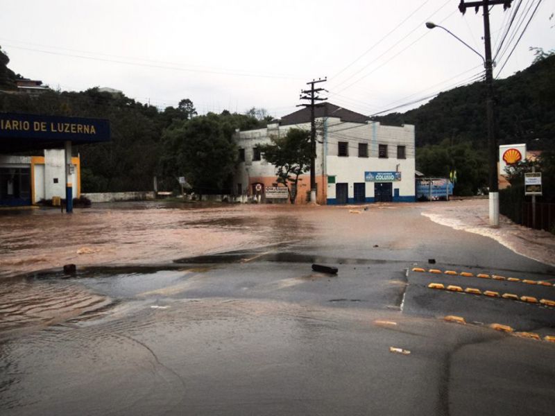 27/06/2014 Imagens publicadas há instantes nas redes sociais mostram a situação da avenida 16 de fevereiro em Luzerna. A ponte do Rio Limeira, na entrada do município pela Caetano Natal Branco, segue submersa. A água do Rio do Peixe toma conta da pista de rolamento e de toda área nas imediações.