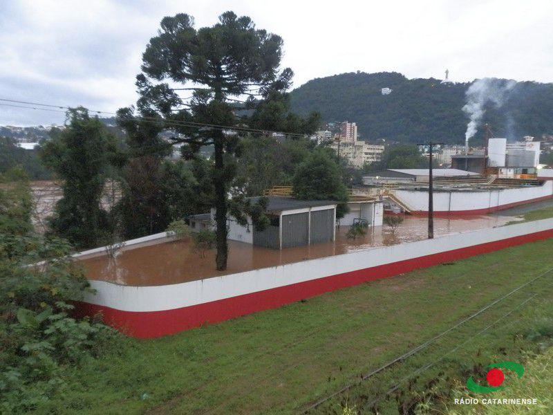 27/06/2014 Desde o final da tarde de ontem, quinta-feira, as águas do Rio do Peixe estão chegando no pátio da empresa BRF de Herval d´Oeste. Alguns serviços por parte da empresa foram paralisados, devido a precaução dos integrantes da diretoria da empresa, haja vista que a previsão é de que a chuva persista no dia de hoje. De qualquer forma, uma equipe de funcionários está de plantão, monitorando e acompanhando a entrada das águas do Rio do Peixe no pátio da empresa BRF na cidade de Herval d´Oeste.