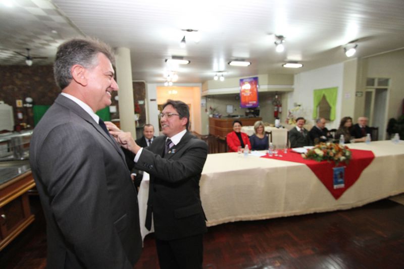 07/07/2014 O Rotary Club de Joaçaba tem nova diretoria. A solenidade de posse dos novos integrantes aconteceu durante jantar festivo realizado na noite de sábado (05) que marcou também o início do ano rotariano. O radialista Nelson Paulo dos Santos assumiu a presidência e vai comandar o clube na gestão 2014/2015 dando sequência ao trabalho que vinha sendo desenvolvido por Miguel Angelo Franzói. Entre as metas da nova diretoria estão algumas ações que garantam melhorias na estrutura física da Escola Rotary Fritz Lucht e o aumento do quadro de associados do clube de serviço.