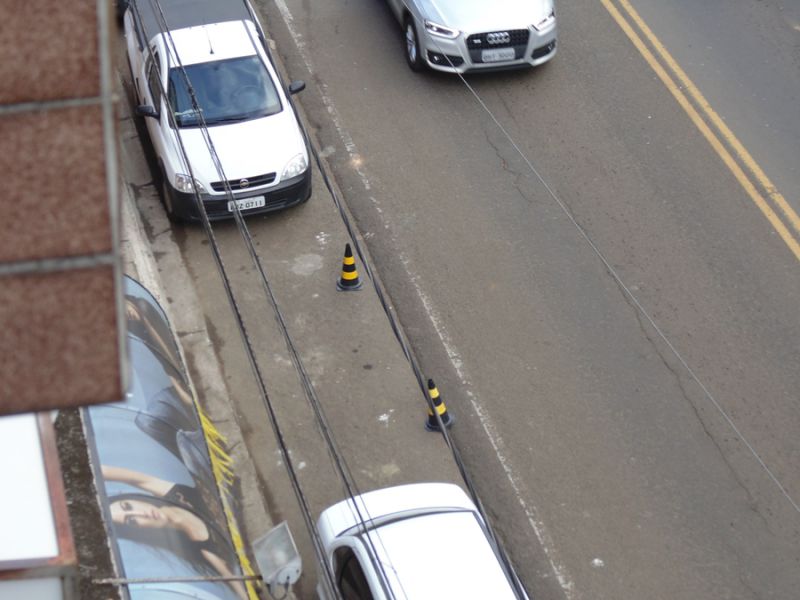 08/07/2014 Um flagrante de desrespeito às regras de bom relacionamento no trânsito em Joaçaba foi registrado pela reportagem da Rádio Catarinense na manhã desta terça-feira (08) em plena avenida XV de Novembro. Para reservar uma vaga de estacionamento um cidadão usou dois cones, os mesmos usados pela polícia, para evitar que outros veículos estacionassem no local. Um ato considerado ilegal e que desta vez foi coibido depois de um certo tempo pela ação de dois policiais militares que foram acionados através do 190. Os policiais foram até o local, constataram o problema e providenciaram a remoção dos cones. O cidadão foi orientado a não agir mais desta forma.