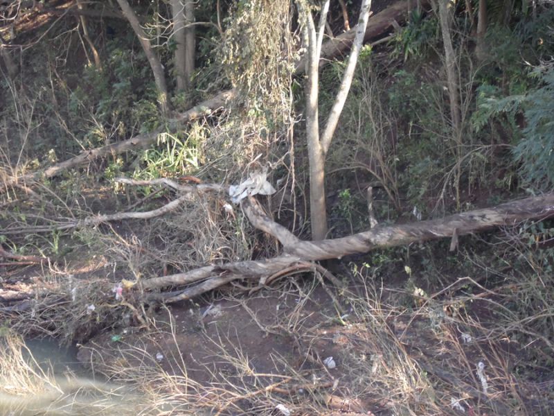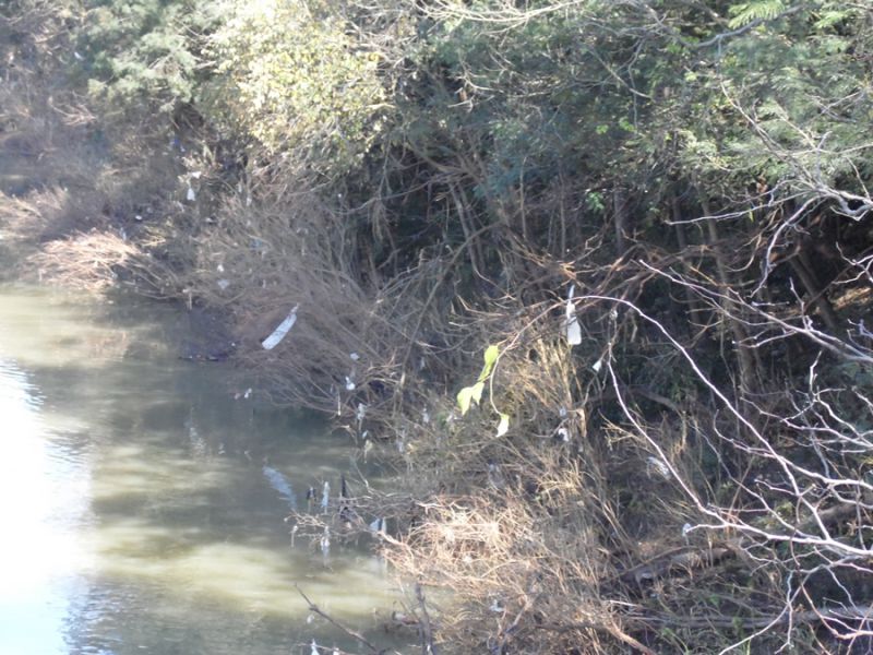 O lixo, pendurado nos galhos, veio arrastado pela enchente, mas a verdade é que ele só chegou até este local porquê alguém não deu a destinação final correta. É comum, por exemplo, encontrar motoristas jogando pela janela inúmeros objetos. Este tipo de material descartado, na maioria das vezes, vai para as valetas e tem como destino os rios ou riachos. Sem contar que antes de chegar até eles, o material entope boeiros e causa muitos transtornos para as prefeituras.