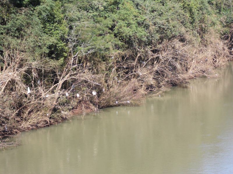 Nesta semana observando a mata ciliar que está nas margens de Joaçaba e Herval nos deparamos com uma triste realidade que se repete também em outros municípios da região. Com a redução do nível do rio, voltando ao leito dentro da cota normal do SIMAE, veio a tona um outro problema. Inúmeras sacolas, sacos, garrafas e pedaços de plásticos ficaram presos nos galhos da vegetação. Trata-se de um volume significativo de lixo em determinados pontos que de longe chama a atenção. Por não ser degradável todo este material ficará na natureza por muitos anos, caso não ocorra um mutirão de limpeza ou algo do gênero.
