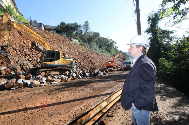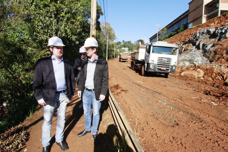 11/07/2014 O prefeito Rafael Laske e o vice Marcos Weiss estiveram nesta quinta-feira (10) vistoriando as obras de revitalização do acesso Adolfo Zigelli. Segundo informações da empresa responsável pelos serviços, 30% das obras estão concluídas. Conforme os dados repassados, 90% dos trabalhos de terraplanagem e 50% de drenagem já foram efetuados. Mesmo com a chuva dos últimos dias, a obra segue no cronograma previsto. “Estou muito satisfeito com o que vi, espero que eu muito breve já possa entregar o primeiro trecho da obra”, disse o prefeito Rafael Laske.