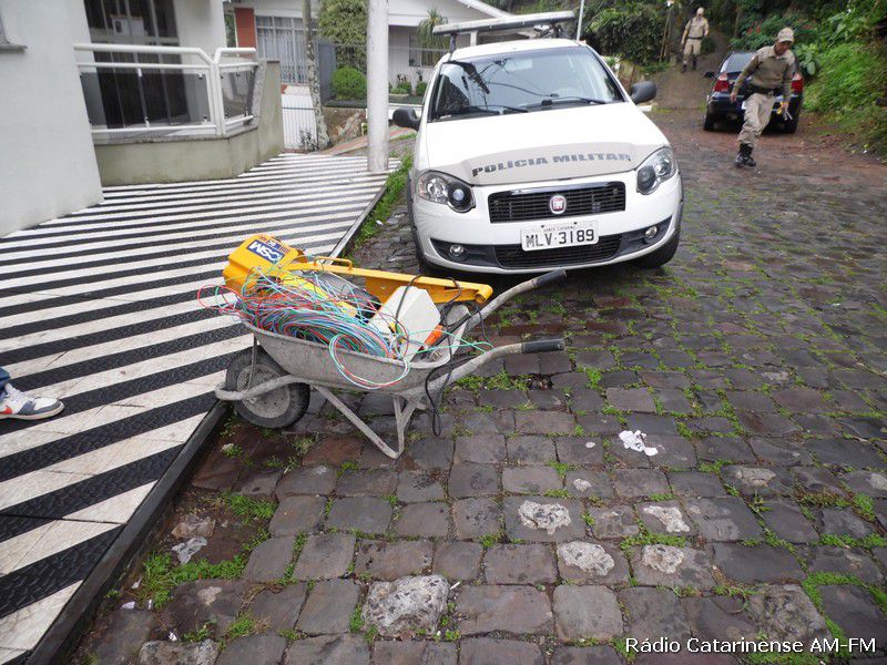 23/07/2014 Durante a manhã desta quarta-feira, 23, a polícia militar deteve dois elementos que são acusados de praticarem furto em uma construção no município de Joaçaba. Um dos homens foi quando abordado pela guarnição da PM, tinha em seu poder um carrinho de mão com alguns equipamentos. Posteriormente ele acabou confessando serem produtos de furto.