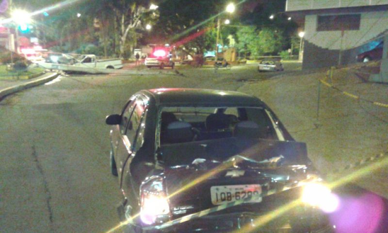 Para surpresa do condutor e passageiros do corsa, quando chegaram em frente a antiga rodoviária se depararam com uma colisão violenta do mesmo veículo em um poste sobre o canteiro da via. Parte do veículo ficou destruído com a colisão que resultou na queda do poste.
