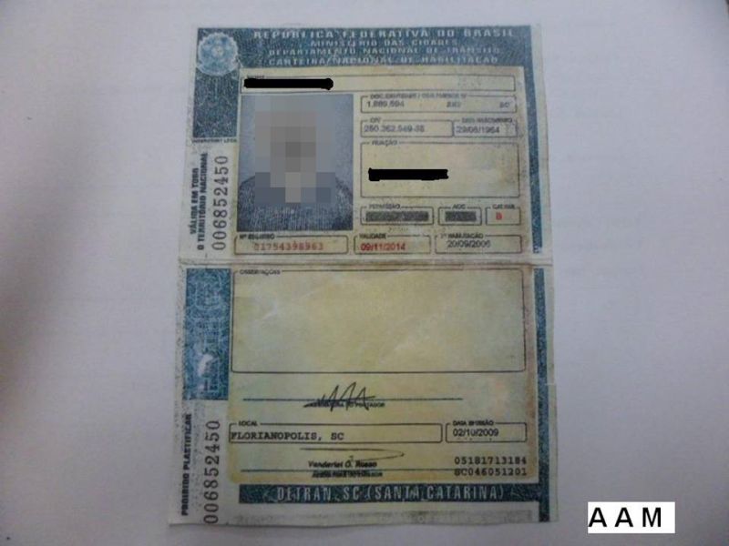 28/07/2014 Um homem de 51 anos confessou a Polícia Militar ter comprado uma Carteira Nacional de Habilitação (CNH) falsa. O fato foi constatado durante uma abordagem de trânsito realizada na noite de sábado (26) no município de Herval d’Oeste. Em procedimento de rotina os policiais abordaram um Chevette com placas de Catanduvas. O motorista apresentou o documento aos PMs que imediatamente suspeitaram tratar-se de CNH falsa em razão da falsificação grotesca. Durante interrogatório o motorista acabou confessando que comprou a CNH pelo valor de R$ 1.600,00 em Faxinal dos Guedes. O condutor e o veículo foram levados para a delegacia de polícia de Joaçaba onde foram adotadas as medidas cabíveis. A pena para falsificação de documentos, de acordo com o Código Penal, é de dois a seis anos de reclusão e mais multa.