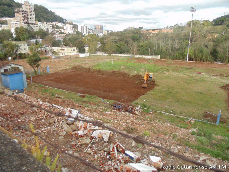 28/07/2014 O templo do futebol joaçabense, que sediou inúmeros jogos e clássicos catarinenses com grandes times, está desaparecendo aos poucos. A Secretaria de Obras da prefeitura de Joaçaba está finalizando a remoção das arquibancadas que é a última etapa do processo de demolição. O Secretário Venilton Telles informou a Rádio Catarinense que o trabalho será concluído nesta terça-feira (29) e que em seguida será removido o alambrado e em seguida a grama. “Nós queremos iniciar ainda esta semana a abertura de cinco grandes pontos de drenagem que vão captar toda água do bairro Cruzeiro do Sul com destino ao Rio do Tigre” explicou o secretário.