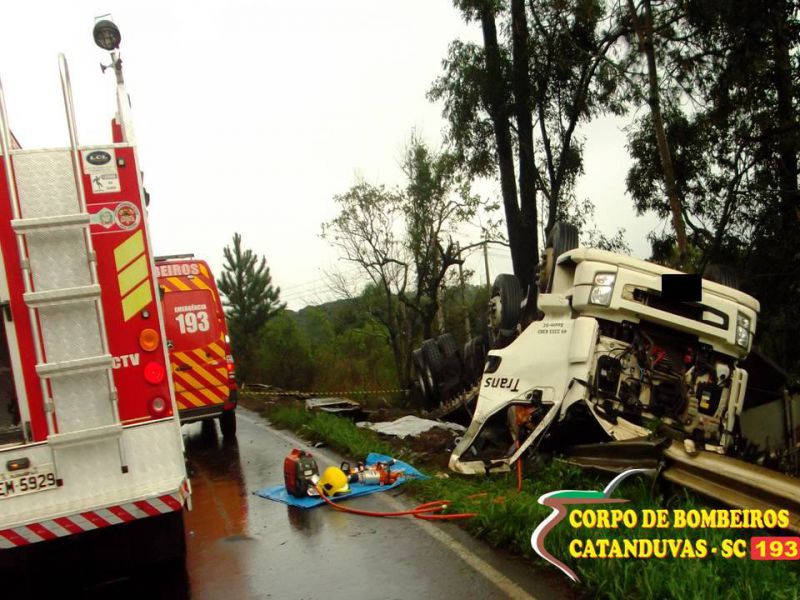 16/08/2014 Na manhã deste sábado (16), foi registrado um tombamento entre o município de Vargem Bonita e o Trevão de Irani, nas proximidades do trecho conhecido como “asfalto quebrado”. Nesta ocorrência se envolveu apenas o caminhão Volvo, branco com placas de Xaxim, conduzido por Daniel Mayer de 31 anos de idade, que estava sozinho no veículo, e segundo informações repassadas pelo Corpo de Bombeiros de Catanduvas, ele não conseguiu fazer a curva, vindo a capotar pelo excesso de velocidade e também porque o asfalto estava molhado na ora do acidente.