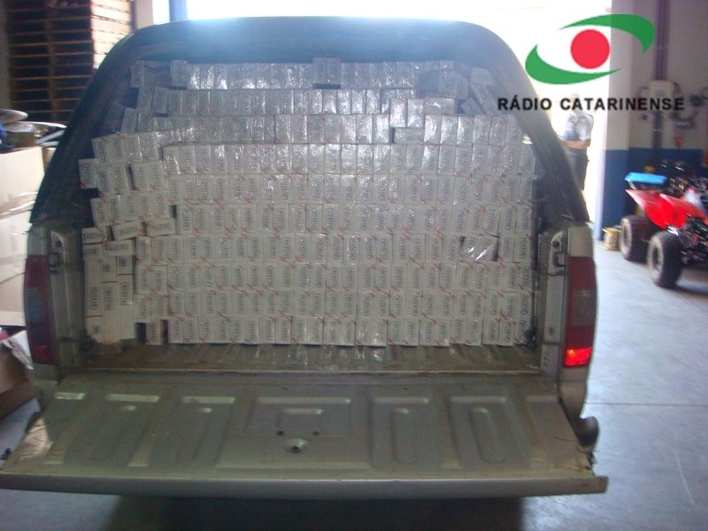 23/04/2012 Policiais Rodoviários Federais, que participam da Operação Sentinela no Meio-Oeste, flagraram na noite de sexta-feira (20) uma S-10 carregada com 2.400 maços de cigarros. Os maços estavam na caçamba e no interior do veículo onde só tinha lugar para o motorista, pois todos os espaços foram ocupados. A carga, avaliada em cerca de R$ 20 mil, havia sido comprada no Paraguai e estava sendo levada para o município de Lages. O caso foi encaminhado para a Receita Federal.