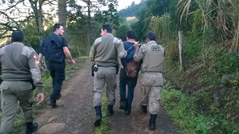 Toda rede da PM foi mobilizada na tentativa de localizar os menores. Ainda pela madrugada os policiais localizaram a Caminhonete com placas de Treze Tílias numa casa de prostituição no município de Herval d’Oeste. Durante a abordagem o motorista tentou fugir e foi parado a tiros pela PM, sendo preso e conduzido a delegacia de polícia. O outro ocupante fugiu pelo mato e foi preso por volta das 08h30 na região da linha Canhada Fundo. Os policias realizaram um cerco e conseguiram encontrar o elemento escondido entre Pinheiros. Ele tem 16 anos e é considerado de alta periculosidade em razão das inúmeras ocorrências que se envolveu em toda região. Em tem mais de 50 passagens pela polícia, entre roubos e furtos e é foragido do CASEP de Curitibanos.