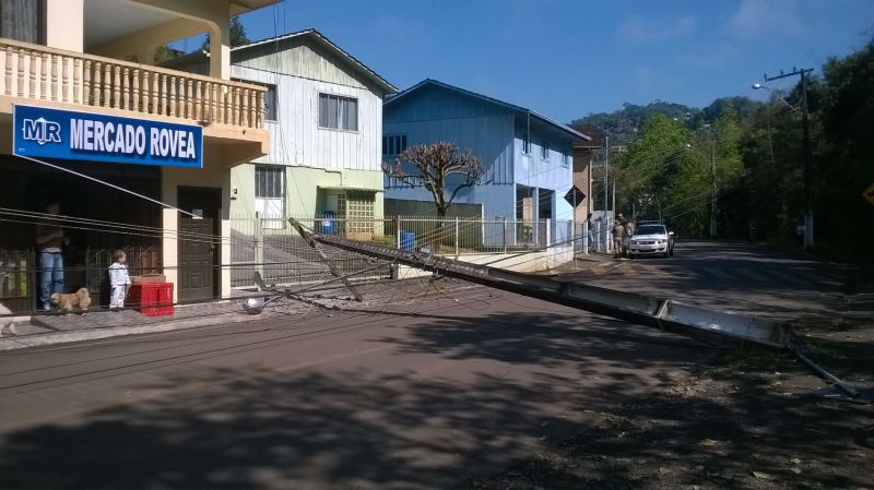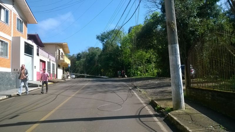 01/09/2014 Uma manobra mal sucedida de um caminhão com placas de Curitibanos deixou parte dos moradores da rua Eliziário de Carli sem energia na manhã desta segunda-feira (01). O caminhão que estava fazendo entrega de mercadorias a estabelecimentos comerciais atingiu um poste de energia da CELESC por volta das 10hs, derrubando o mesmo. O motorista informou que não viu o poste. Os pedestres e moradores vizinhos escutaram um forte estrondo e viram muitas faíscas saindo dos cabos de alta tensão. Apesar da queda do poste, ninguém ficou ferido. Parte da rua, entre o Colégio Frei Bruno e o BAR 636, ficou sem energia.