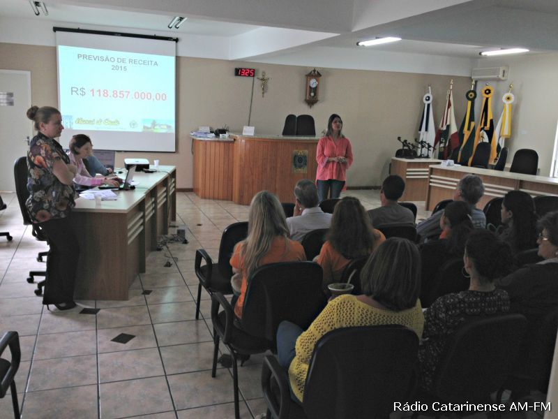 15/09/2014 Em Audiência Pública nesta segunda-feira (15), na Câmara Municipal de Vereadores, a equipe da Secretaria de Planejamento da Prefeitura de Herval d’ Oeste apresentou a Lei de Diretrizes Orçamentárias para o próximo exercício financeiro (LDO 2015). As metas e as prioridades da Administração Municipal para o ano de 2015 foram demonstradas pelo setor de planejamento e contabilidade, durante a Audiência Pública, que contou com a presença de vereadores, secretários municipais, representantes de entidades e a sociedade. A previsão orçamentária para 2015 é superior a R$ 118 milhões de receita e despesa, são R$ 15 milhões a mais que o orçamento deste ano para 14 secretarias e fundos municipais.