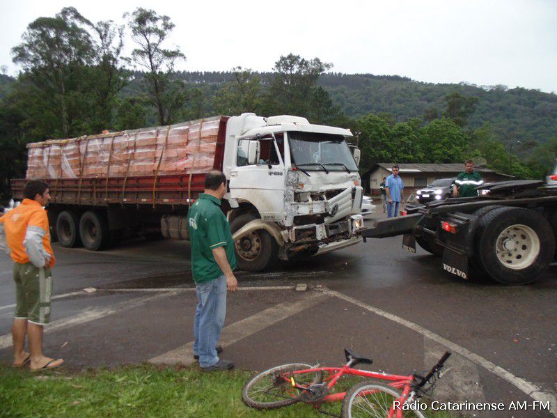 26/09/2014 Por volta das 17h desta sexta-feira (26), mais um acidente foi registrado no trevo do Chocodinho que dá acesso ao município de Joaçaba. Desta vez a colisão foi entre um caminhão com placas de São Domingos (SC) e um ônibus escolar com 14 crianças que estavam retornando do Senai.