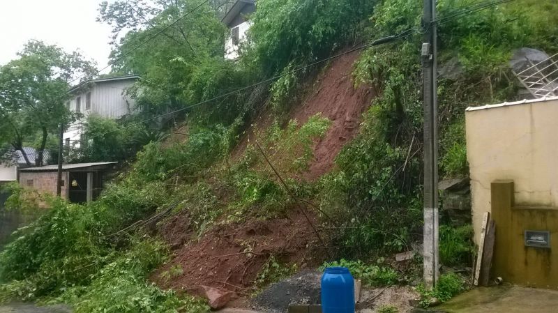 30/09/2014 Um deslizamento de terra interditou parcialmente a rua Carlos Gomes no centro do município de Herval d’Oeste na manhã desta terça-feira (30). Com o volume excessivo de água, em razão da chuva, a terra se deslocou da encosta e invadiu a rua deixando o trânsito em meia pista. A Secretaria de Obras foi acionada no final da manhã para fazer a remoção da terra, pedras e árvores. O trabalho já está sendo executado na altura do número 250. O terreno era baldio e nenhuma casa foi atingida.