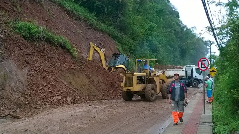 01/10/2014 A quarta-feira (01) está sendo de muito trabalho para as equipes da Secretaria de Infraestrutura da prefeitura de Joaçaba. A prioridade é para a barreira que caiu na rua Antônio Nunes Varela, no bairro Vila Pedrini. A queda ocorreu nas proximidades do Centro de Referência da Melhor Idade. Devido à grande quantidade de chuva o solo ficou encharcado e acabou cedendo e ocupando meia pista da via. Técnicos da defesa civil avaliaram a situação e constataram que o solo ainda apresenta-se instável e mesmo com a limpeza, o trafego no local será mantido em meia pista por questões de segurança até o clima se estabilizar e o solo secar. A Defesa Civil continua de prontidão pelo fone 199.
