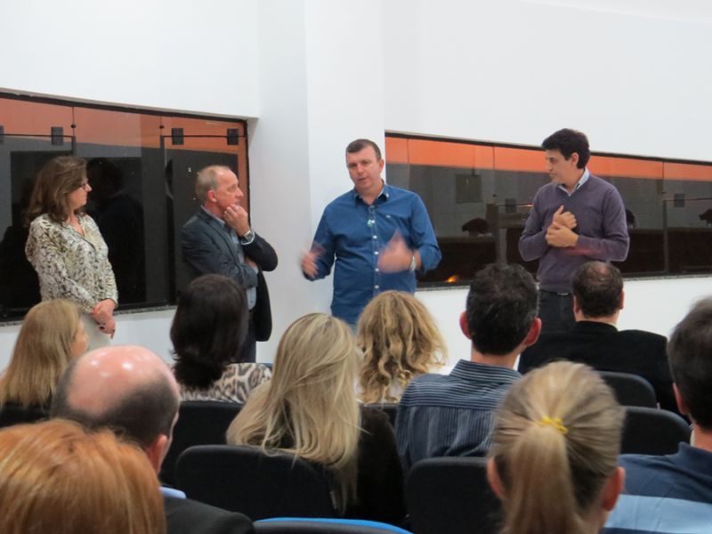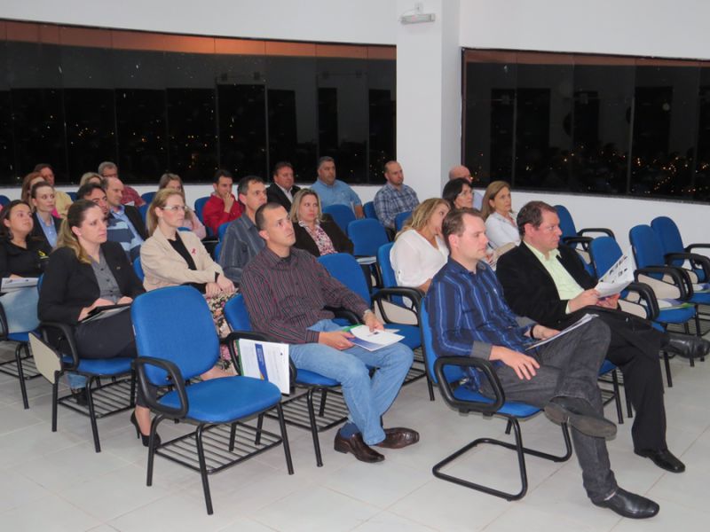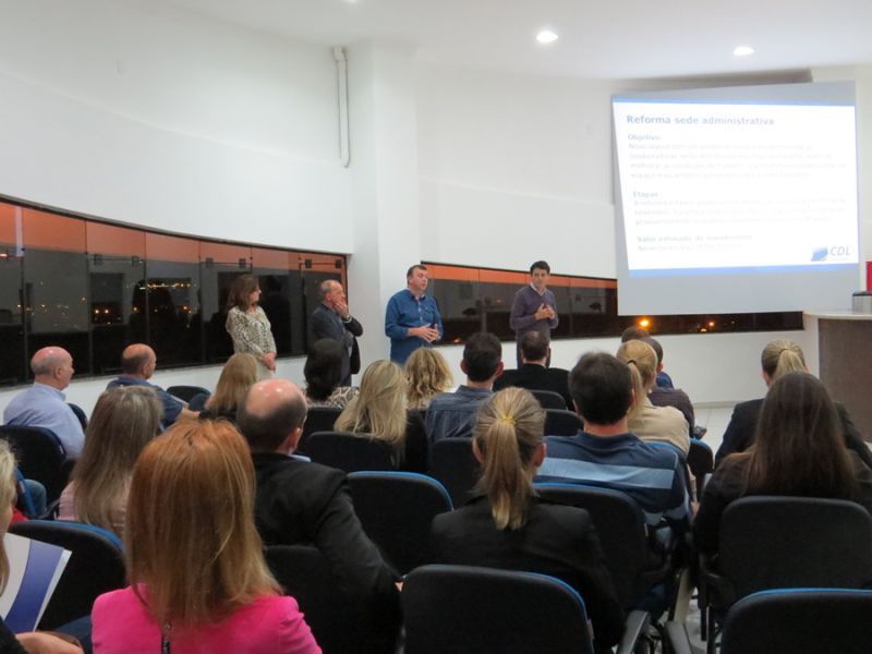 01/10/2014 A Câmara de Dirigentes Lojistas de Joaçaba (CDL) realizou na noite desta quarta-feira (01) a 1ª edição do Happy Hour “Fique por Dentro”. O evento aconteceu no auditório do Monumento Frei Bruno para um grupo de empresários que tiveram a oportunidade de conhecer os projetos e ações e ainda estreitar as relações com os gestores da CDL. “Este projeto tem por objetivo transmitir as informações aos associados sobre o que estamos fazendo, por isso o nome Fique por Dentro” explicou na abertura do evento Maria Claudete Becker, diretora de Aperfeiçoamento Profissional. O presidente interino da CDL, Paulo Delfino Pinto, falou aos presentes sobre o projeto de revitalização do Monumento Frei Bruno, a reforma da sede administrativa, do CDL Recicla e também a respeito do Concurso de Decoração de Natal. Também foram apresentados aos associados a programação de palestras que serão realizadas até o final do ano em parceria com algumas entidades, como é o caso do Sebrae, Representantes da empresa Doma Eventos apresentaram um desfile de modas que será realizado em Joaçaba no mês de novembro, quando será lançada a coleção primavera/verão. Apenas empresas associadas a CDL poderão participar, sendo que as interessadas deverão adquirir cotas que darão direito ao desfile e mais 150 convites já que trata-se de um evento fechado.