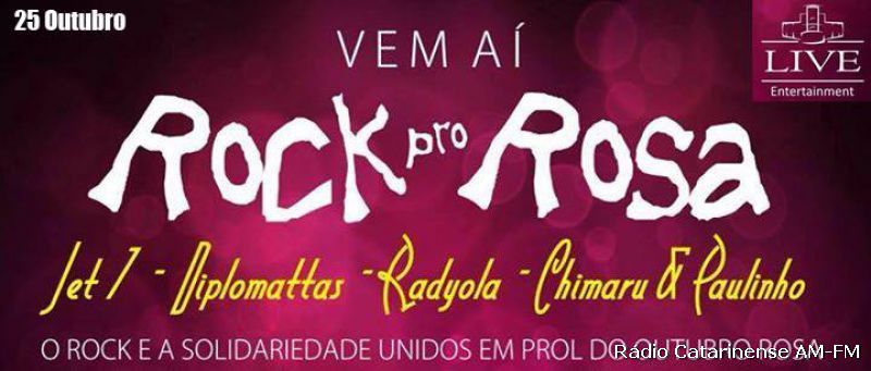 A mobilização em prol da campanha é grande em diversos locais, inclusive em Joaçaba, onde uma ação inovadora e de solidariedade promete colaborar ainda mais com a Rede Feminina de Combate ao Câncer. Um grupo de amigos promoverá a festa Rock pro Rosa no dia 25 de outubro na Live, a fim de angariar recursos para destinar à Rede. O evento organizado pelos músicos e bandas de Joaçaba - Jet 7, Radyola, Paulo Passold e Chimaru com a parceria da Live, é um gesto de demonstrar gratidão pelo trabalho desenvolvido de forma voluntária por diversas mulheres em Joaçaba.
