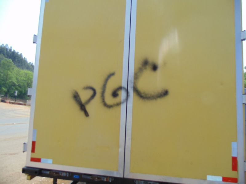 13/10/2014 A carroceria/furgão de um caminhão amanheceu nesta segunda-feira (13) com a marca do Primeiro Grupo Catarinense (PGC). O movimento criminoso é responsável pela onda de dezenas de ataques no Estado. A sigla PGC foi pintada na parte traseira do furgão que encontra-se estacionado numa oficina mecânica no trevo do Chocodinho em Joaçaba. Funcionários informaram que saíram do trabalho na sexta e quando retornaram hoje encontraram a pichação.