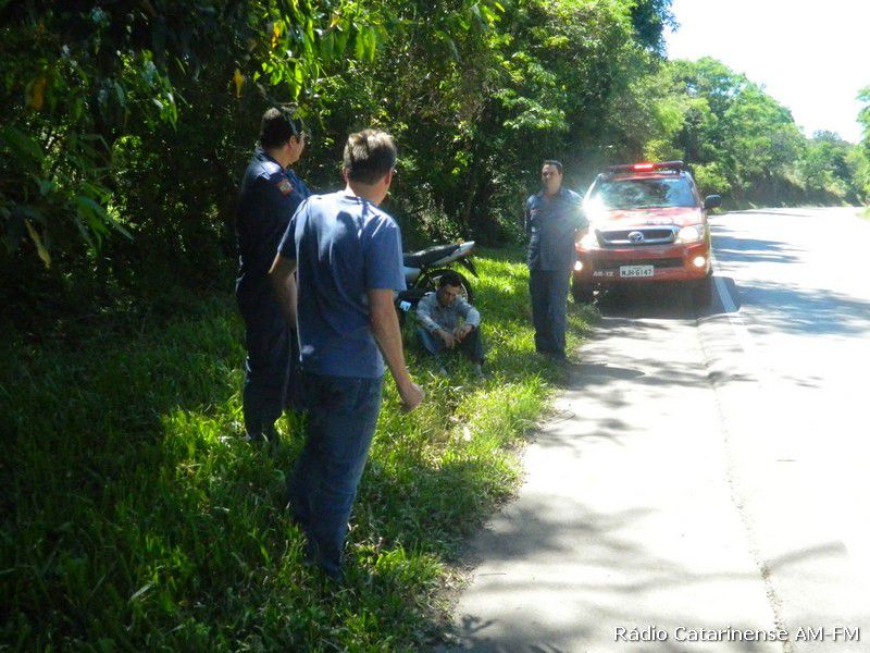 M.F. fazia o sentido Joaçaba/Erval Velho quando perdeu o controle de sua moto. Integrantes de uma guarnição do Corpo de Bombeiros da cidade de Itajaí que passavam pelo local acompanharam o acidente e prestaram os primeiros atendimentos ao condutor da moto. Posteriormente eles solicitaram apoio de uma guarnição de Joaçaba.