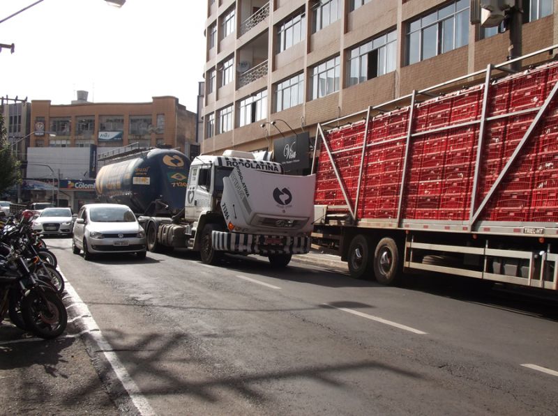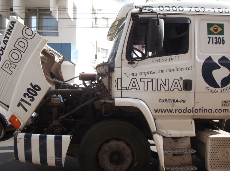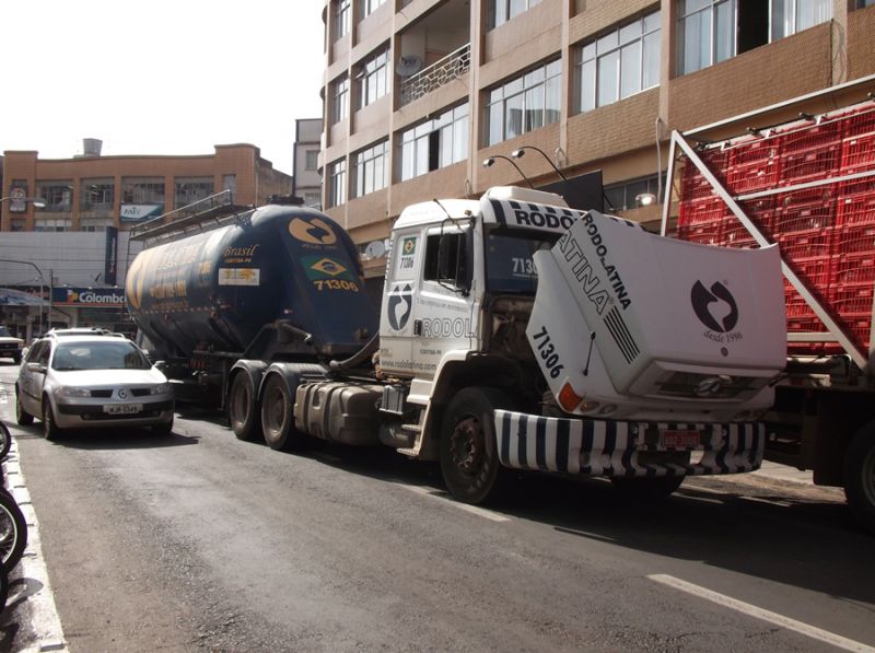 24/10/2014 Por volta das 9h desta sexta-feira (24), uma carreta com placas de Curitiba (PR) apresentou problemas mecânicos quando trafegava na área central de Joaçaba. Na rua 7 de Setembro, proximidades da Caixa Econômica Federal (CEF), a caixa de marcha quebrou e o veículo ficou parado no meio da pista, ocasionando dificuldades para os motoristas que transitavam na área central, em especial os que tinham caminhões.
