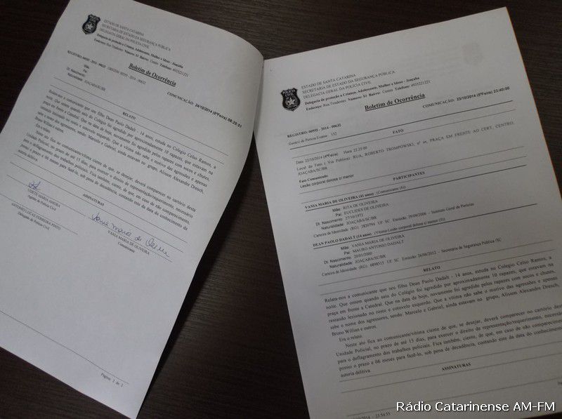 Mãe e filho vão procurar a polícia militar para saber da possibilidade de conseguir imagens das câmaras de segurança que possam mostrar as agressões que aconteceram na quarta-feira à noite, pois a ocorrência aconteceu na praça defronte a catedral Santa Terezinha. Além disso, o menor agredido fará na tarde desta sexta-feira exame de Corpo Delito no Instituto Médico Legal (IML) de Joaçaba.