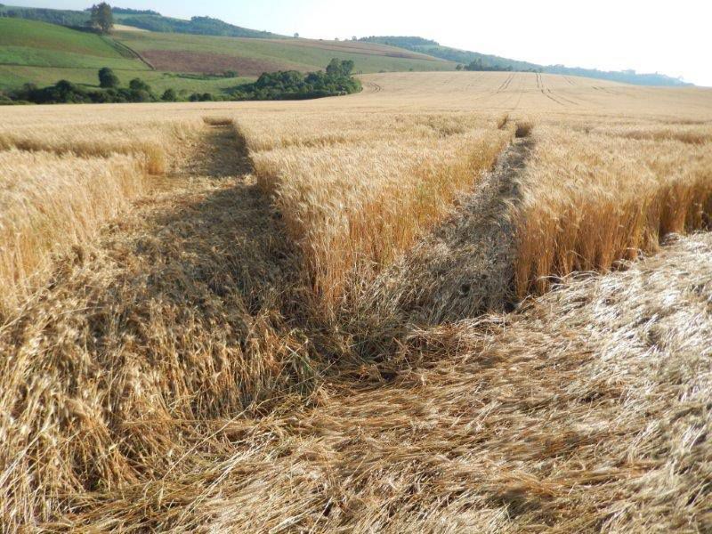 Pelo sétimo ano consecutivo, o fenômeno se repete em Ipuaçu, deixando absolutamente clara sua natureza não humana e inteligente. Eles surgiram de novo, mais uma vez em dupla e na época habitual: últimos dias de outubro, primeiros dias de novembro. O local onde foram encontrados os dois primeiros agroglifos de 2014, nesta manhã de domingo, 26 de outubro, por volta das 07h30, é o topo de um morrote que fica na propriedade do senhor Ângelo Aléssio. Sua fazenda já havia sido palco de agroglifos em anos anteriores. Neste ano, ela era uma das poucas em que o trigo ainda não havia sido colhido, como ocorreu com a maioria das propriedades ao redor.