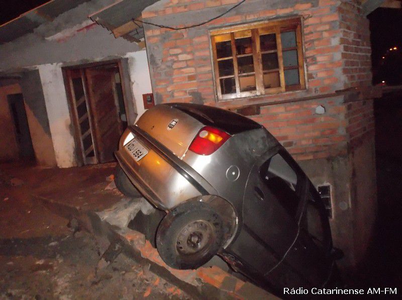 08/11/2014 A família do senhor Dorvalino Dutra Duarte que estava dormindo, teve um grande susto por volta da 1h da madrugada deste sábado (8). A residência deles localizada no entroncamento da rua Armando Sberb com a travessa Belém no bairro Vila Rica em Herval d´Oeste, foi invadida pelo automóvel pálio de cor prata com placas de Videira, que estava sendo conduzido por E.E.A.D. de 18 anos.