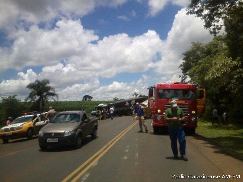 Informações dão conta que o caminhão de Treze Tílias que fazia o transporte de leite seguia sentido Flor da Serra do Sul, quando numa curva uma das partes se soltou e atingiu o caminhão Mercedes-Benz, que seguia no sentido contrário. O motorista do Paraná ficou preso nas ferragens, não resistiu aos ferimentos e morreu no local.
