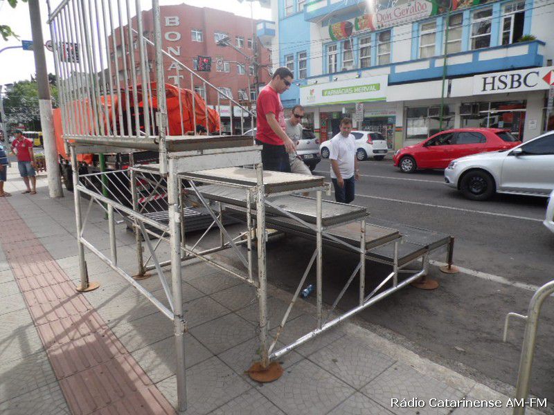 01/12/2014 Aconteceu nesta segunda-feira (1º) um teste para a instalação de um novo modelo de arquibancada que deverá ser usado no desfile das escolas de samba em 2015. Representantes da Liga Independente das Escolas de Samba de Joaçaba e Herval d´Oeste (Liesjho), do Corpo de Bombeiros e da empresa responsável pela arquibancada se reuniram na avenida XV de Novembro e fizeram a montagem de um lance desta nova arquibancada.