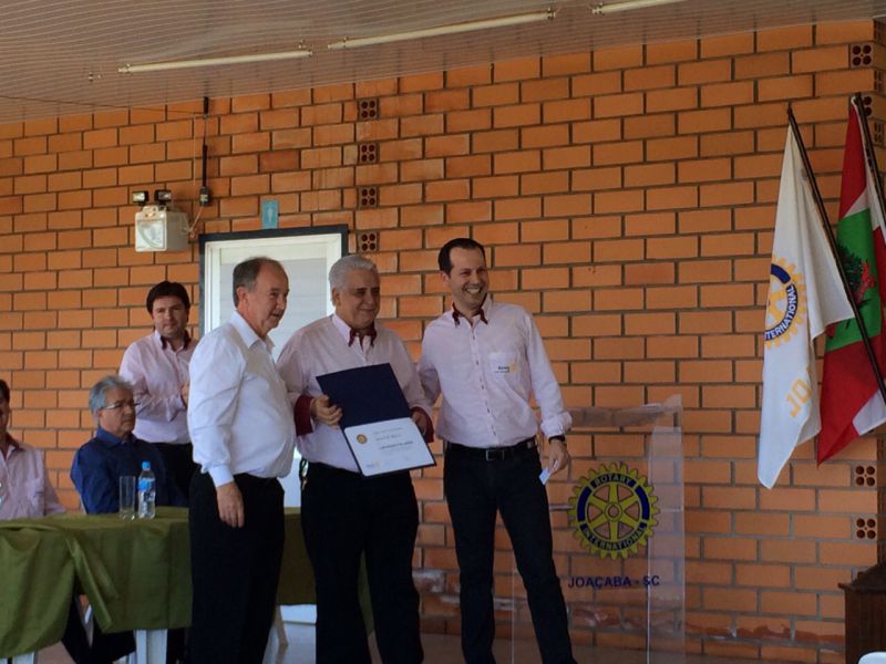 08/12/2014 O Rotary Clube Joaçaba promoveu no ultimo sábado a reunião festiva de fim de ano. Na oportunidade cinco rotarianos foram homenageados com o titulo Paul Harris, o fundado do Rotary Internacional: Celso Fraiberguer, Osmar de Marco, Rodrigo Bonato, Jucelino Ferraz e Edemar Gruber. Também tomaram posse quatro novos rotarianos: Roque Cazagranda, Jonatas Deon, Tania dos Santos Nodari e Hipolito Kremer.