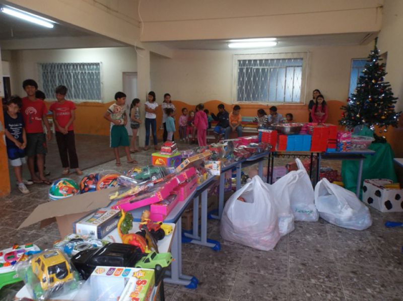13/12/2014 Na manhã deste sábado (13) um grande número de crianças estiveram presentes nas dependências da Escola Básica Municipal no bairro Nossa Senhora de Lourdes em Joaçaba, para receber presentes e guloseimas conseguidas através de uma Ação Solidária promovida pelo Rotary Clube e a Associação Joaçabense de Bolão.