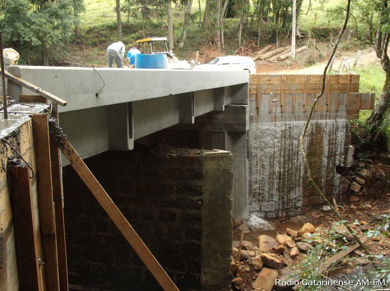 A recuperação desta ponte só está sendo possível, porque a administração de Lacerdópolis recebeu da Defesa Civil Estadual neste ano, as pranchas da ponte em pré-moldado com 11 metros de cumprimento. Num acordo verbal firmado entre as duas prefeituras, ficou acertado que uma Joaçaba entraria nesta parceria com o material, enquanto que Lacerdópolis ficaria com a responsabilidade da mão de obra.