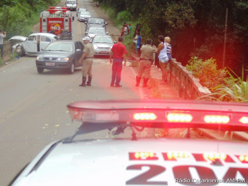 Depois da pancada o motorista de iniciais A.C.S teve um grande susto, porque o veículo pegou fogo na parte dianteira e quase foi parar dentro do rio. Populares que passavam pelo local ajudaram o Corpo de Bombeiros a apagar o fogo no Fusca, porque o motorista que apresentava ferimentos na cabeça, além de uma suspeita de fratura no braço direito, estava dentro do automóvel e depois de ser retirado, foi conduzido para o Hospital Universitário Santa Terezinha (HUST) em Joaçaba, onde recebeu os atendimentos médicos.