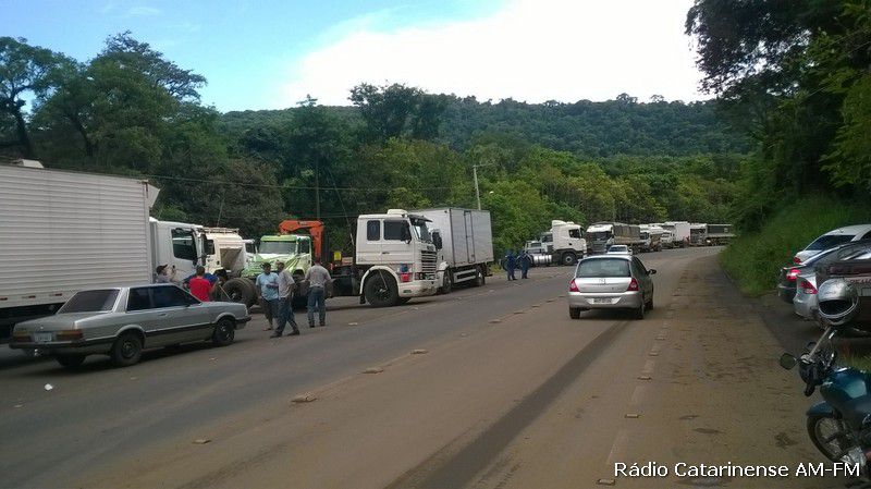 24/02/2015 Como uma forma de incentivo a classe, caminhoneiros de Joaçaba montaram durante a tarde desta terça-feira (24), dois pontos de paralisação, um defronte ao posto Amigão que liga a BR-282 e o segundo nas proximidades da Recauchutadora Roda, no sentido Lacerdópolis.