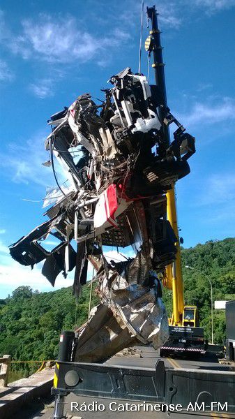 19/03/2015 Foi concluído com sucesso o trabalho que demorou 6 horas para a retirada do caminhão que desde a madrugada da quarta-feira estava submerso nas águas do Rio do Peixe, depois de se envolver num trágico acidente que vitimou 4 pessoas. Os corpos foram retirados no mesmo dia do rio pelo Corpo de Bombeiros, já o caminhão precisou de um tempo maior, isso porque uma empresa especializada teria que ser contratada, o que acabou acontecendo. Nesta quinta-feira (19), dois guindastes realizaram o serviço de retirada do veículo.