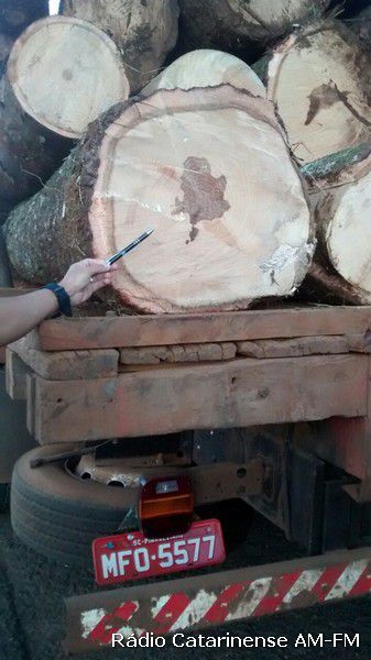 26/03/2015 Por volta das 18h30 desta quarta-feira (25), a Polícia Militar Ambiental com sede em Herval d´Oeste, flagrou transitando nas proximidades do município de Jaborá um caminhão com placas de Pinhalzinho e que transportava aproximadamente 18 toras de madeira, sendo a grande maioria araucária. Segundo o tenente Tatiano Cabral, o motorista não possuía o Documento de Origem Florestal (DOF) que é emitido pelo Ibama.