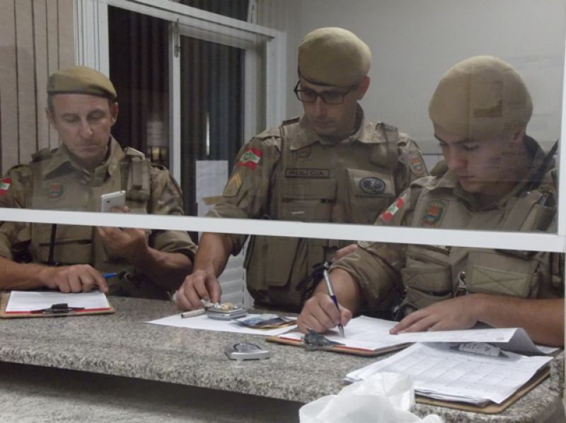 27/03/2015 Numa abordagem a um veículo táxi que circulava pela rua 1º de janeiro no bairro São Jorge em Herval d´Oeste, policiais do Pelotão de Patrulhamento Tático (PPT) encontraram droga com um homem de iniciais A.P.A. de 22 anos, que estava acompanhado de sua namorada de 19 anos.